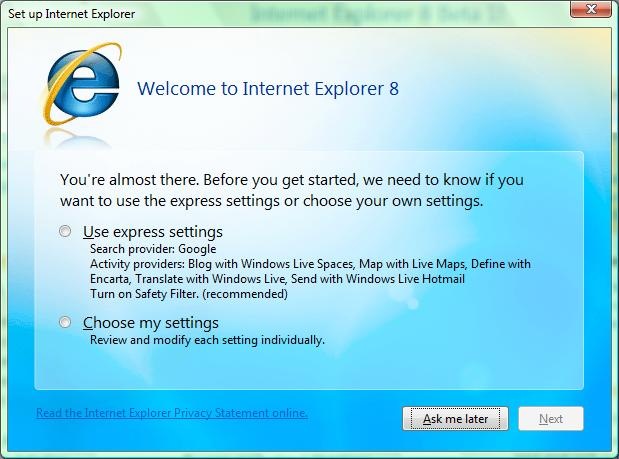 A new first run settings wizard walks you through the various different old and new settings available, such as Search, Apps and Safety Filter (aka Phising Filter).